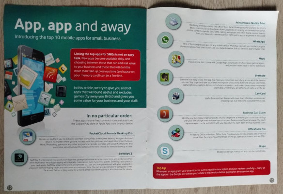 Armed with Google and sheer willpower I taught myself basic Android development and wrote the first proof of concept in like a week or two. We sold a few copies of that for something like $1 and made a little ad revenue. But we had no idea what we were doing. That app was featured in a booklet put out by Vodacom in 2013 in an article titled “Vodacom’s top 10 apps for small businesses”.